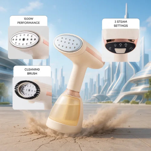 The Urban Steamer turns water into dry steam at up to 140 °C, which penetrates textile fibres and gently relaxes them.